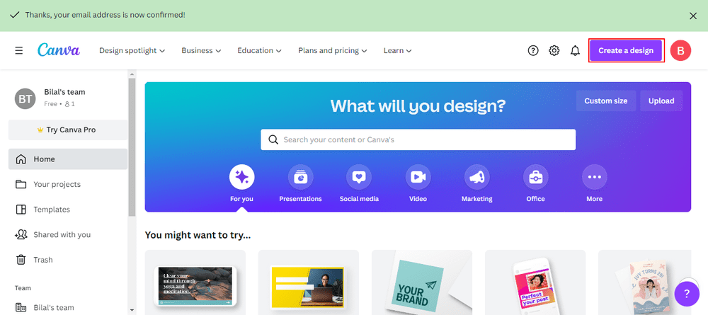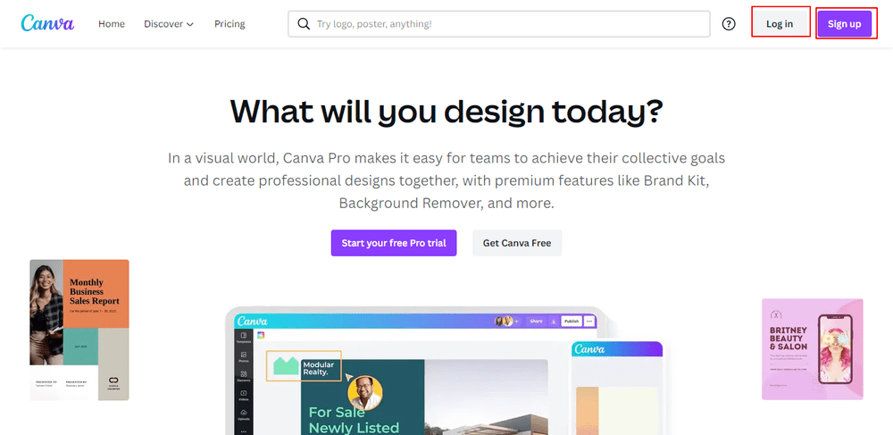 Sign In to canva.com or sign-up if you are using canvas for the first time.