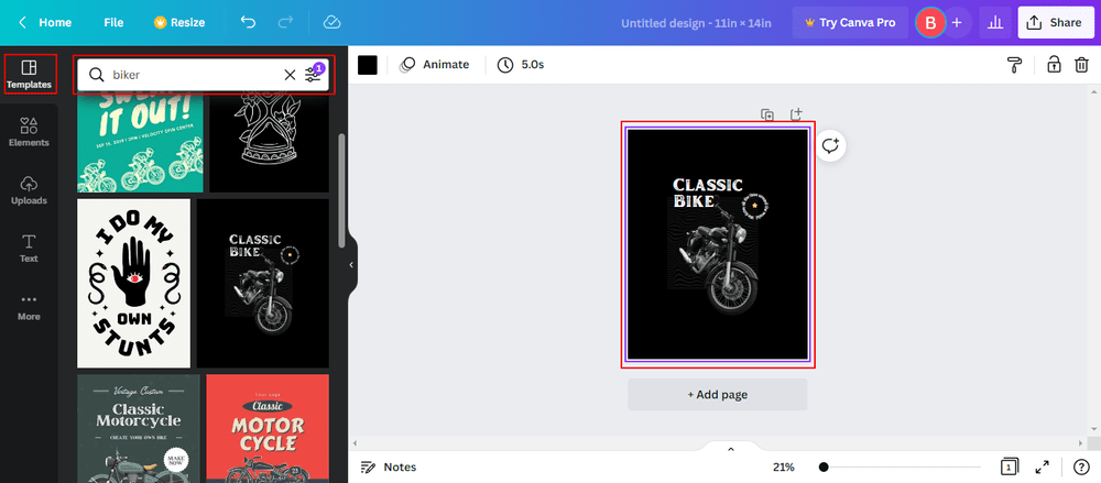 Suppose you’re an avid bike rider. Click the template tab and go to the search bar above the library.