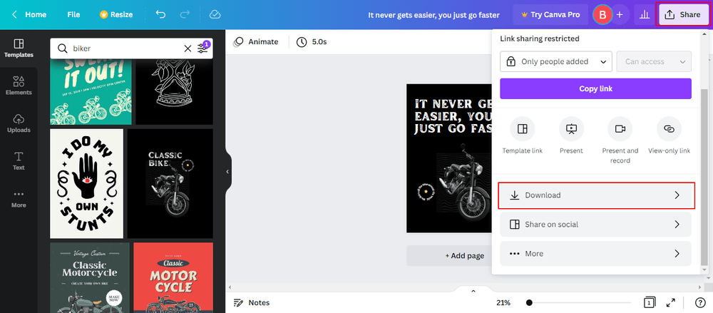 Type in “biker” to get a selection of ready-to-use graphics related to your search term.